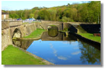 BUGSWORTH BASINS or “Buggy” to its friendsBugsworth Basins are the head of navigation of the Peak Forest Canal. They were created to facilitate the transportation of limestone, lime and gritstone from quarries in Derbyshire to Manchester and beyond. The initial transportation was by tramway to the basin and then by canal. The first basin opened in 1796 and, as Bugsworth became a thriving industrial centre, two more basins were built along with 19 lime kilns. This gave the Basins the capacity to handle over 600 tons of limestone per day and thus become one of the largest inland ports ever created on the English narrow canal network.You have to remember that this canal network once extended to over 3000 miles, as compared with the modern motorway network which is 2025 miles. But all of this gave way to the railways on a slow decline and in 1927 the Basins were closed. In 1968 the Inland Waterways Protection Society started an ambitious restoration project and today that restoration is nearly complete. Granted the status of a Scheduled Ancient Monument in 1977, The Basin complex and its associated structures and physical remains are now protected by law under the Ancient Monuments and Archaeological Areas Act.As you stand in the midst of this stone built complex it doesn’t take a great deal of imagination to visualize the intense activity of a facility that had to process and shift 600 tons of rock on a daily basis. This with the limited mechanization of the times. The trundling wagons of the tramway, the roar of the lime kilns, dust and smoke and the physical efforts of workers painted white with lime dust. But in our minds eye all this gradually fades away and we are left with the peace, the tranquillity and the verdant greenery of this seemingly remote place. You can still walk the tramway, moor up in the basins and ignore the ghosts. The hills of the Peak District are all around. A model and general views of the facility.